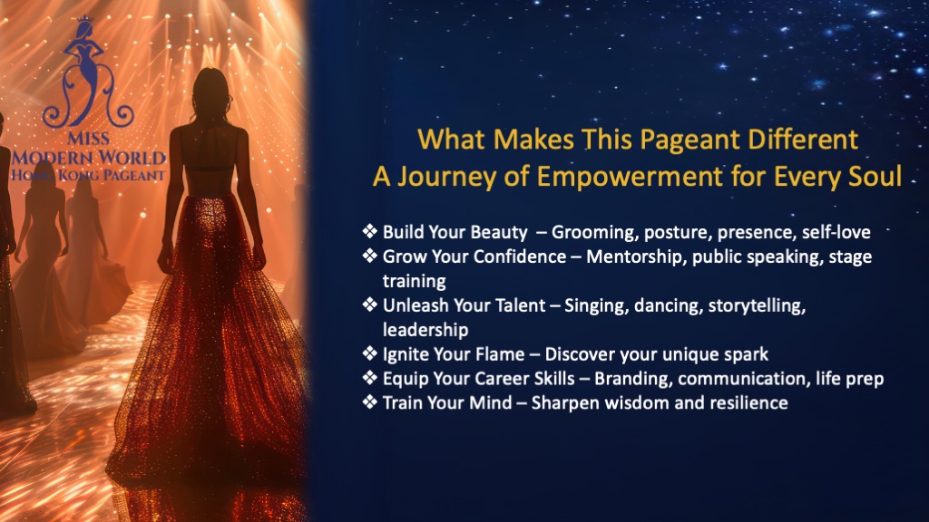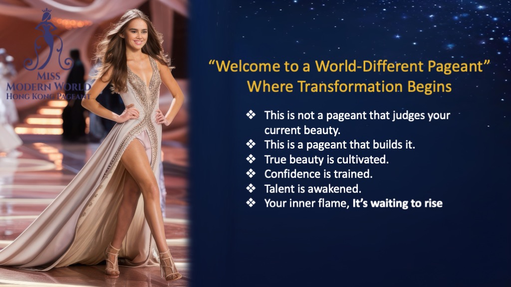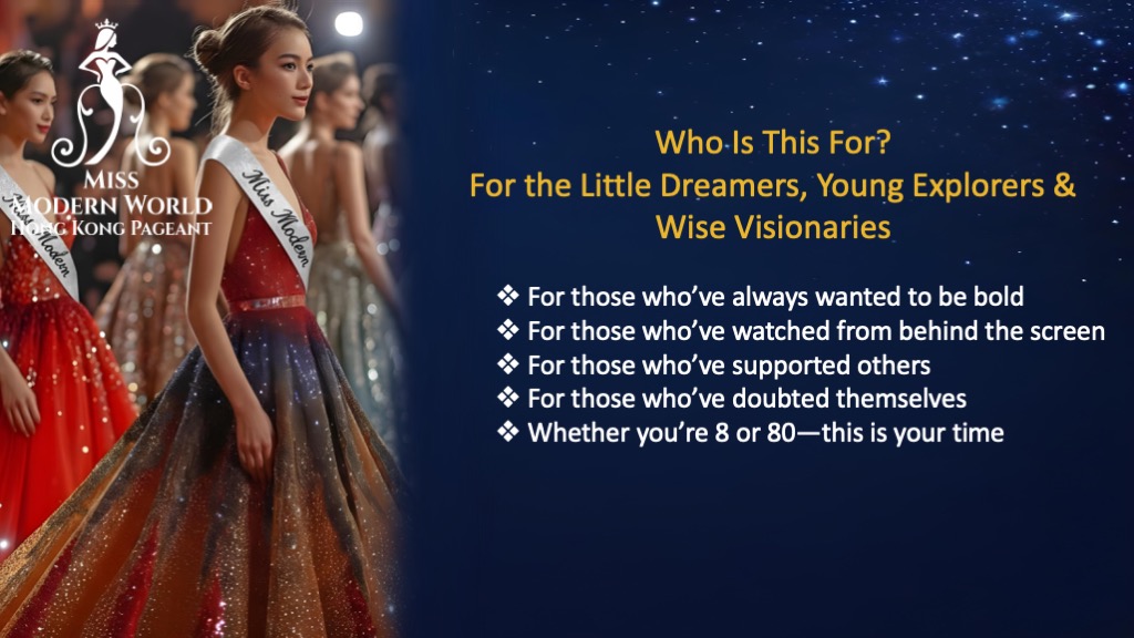 The Modern Miss World category is designed for women aged 18 and above, emphasizing intelligence, talent, and social responsibility. Contestants showcase external beauty while enhancing their confidence and leadership skills, becoming active role models for social good.